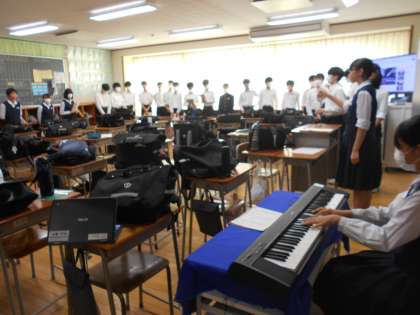 クラスで合わせるときには、リーダーから、「この部分は、もっと○○を意識して歌いましょう!」など、部分練習をしていクラスもありました。それぞれのクラスで、工夫しながら練習を進めていて、毎日の練習の成果が楽しみな日々です。