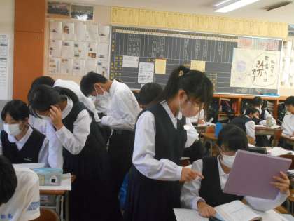 国語の授業では、「言葉をもつ鳥シジュウカラ」という教材に入りました。途中意見交換しながら授業が進みました。