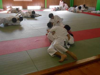 保健体育の授業は柔道でした。横四方固めにトライしていました。