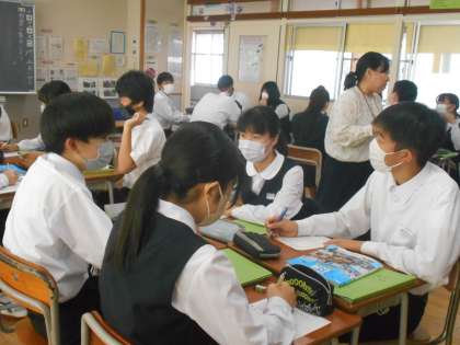 社会の授業では、政党は政治においてどのような役割を果たしているのか考えました。