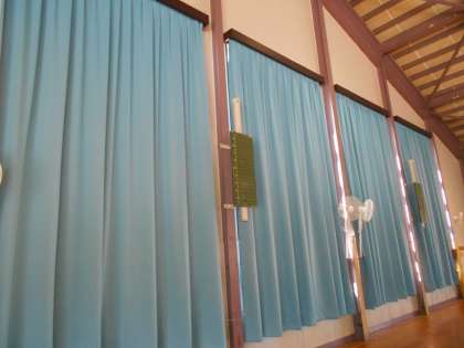 35年以上経っていた体育館のカーテンが新しくなりました。昨年度南側を新しくしたので、これで全面新しくなり、とてもすっきりしました。生徒のみなさんも活動しやすくなることと思います。