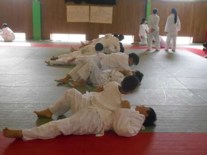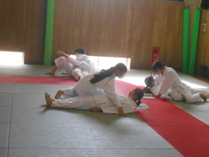 保健体育の授業では、柔道の押さえ込みの練習をしています。なかなか形が決まらないようですが、練習あるのみです。