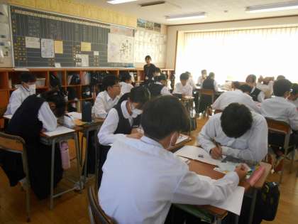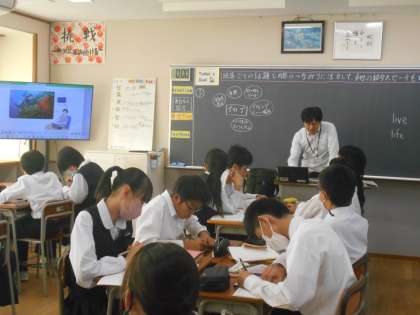 英語の授業では、段落ごとの話題と内容のつながりに注目して紹介文を読んでいました。内容をつかむこつにつなげられたでしょうか。