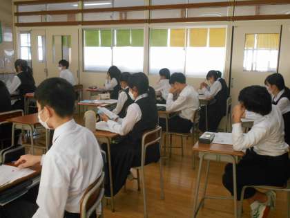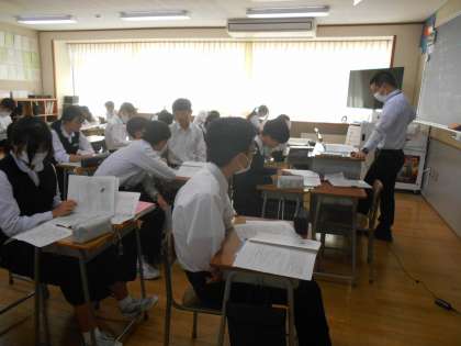 英語の授業では、テストの振り返りをしていました。間違い直しノートを作るなどして、家でも再確認をしておきましょう。