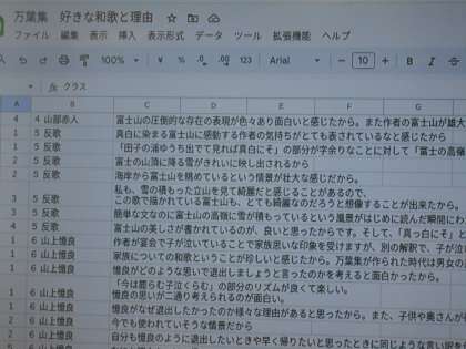 国語の授業では、古今和歌集や新古今和歌集を読んで、情景や心情をイメージしたことをChromebookを使って出し合いました。何百年も前の日本を感じられたでしょうか。