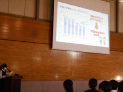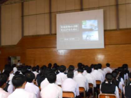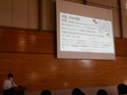 「持続可能な社会を目指して」、1学期から行ってきた卒業研究の学年発表会を行いました。それぞれ、自分にできることを考え、実践してきたこと等を、各クラスの代表者が発表しました。