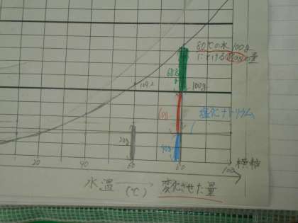 理科の授業では、溶解度の曲線について勉強しているクラスもあり、丁寧にかいていました。