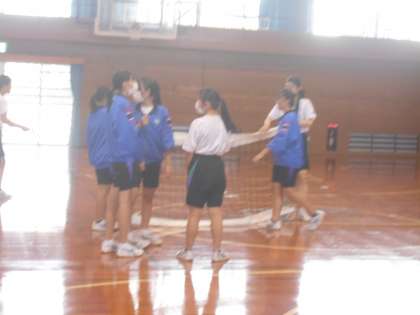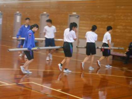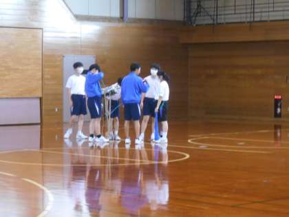 保健体育の授業は、ちょうど後片付けの時間でした。みんなで手分けして片付けをしており、とてもスムーズでした。
