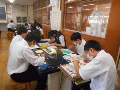 他のクラスの美術の授業でもパネル制作が進んでいます。仕上がりは12月の保護者懇談会で見ていただくことになると思います。