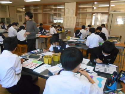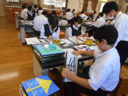 美術の授業では、金曜日までに仕上げることを目指して、集中して取り組んでいました。