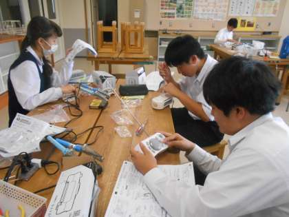 技術の授業では、ラジオ制作も終盤です。できたところまでを先生にチェックしてもらいながら進めていました。
