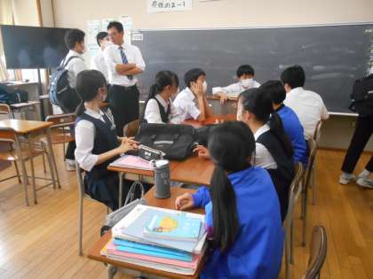 合唱練習終了後、パートリーダーによる反省会を各クラスでしていました。「ここをもうちょっと」といった改善すべきことを出し合っていました。残り2日間精一杯みんなと取り組み本番に臨みましょう。