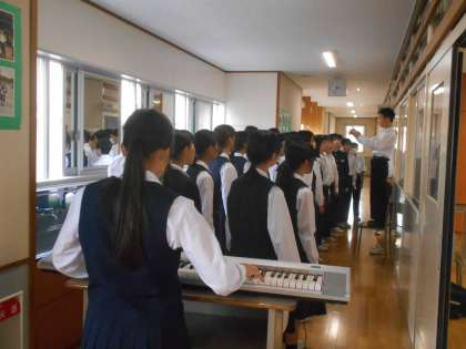 今日の合唱練習の様子です。本番が近いこともあり、段を作って練習に臨ンでいるクラスもありました。1年生の奮闘ぶりもすばらしいです。本番が楽しみです。