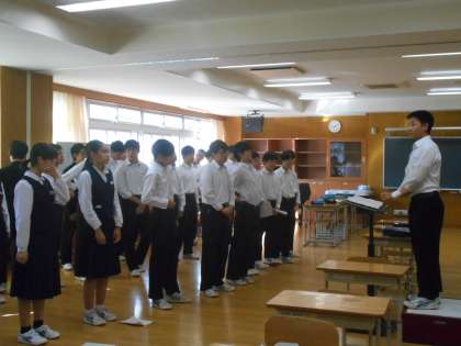 音楽の授業では、明日の合唱コンクールを前に最後の授業での練習でした。練習は残り1日ですが、よりよい合唱を目指して頑張っています。