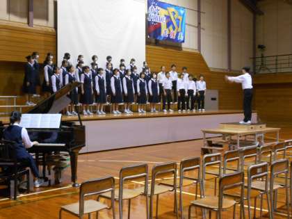 毎朝練習を重ねてきた「折り鶴」合唱団の、1回目の本番は、明日の文化活動発表会です。今日は、体育館でリハーサルを行いました。練習の成果が出て、平和への思いがこもった素敵な合唱が響き渡ってました。明日は、たくさんの方に合唱を聴いてもらい、平和への思いを高めてもらえるといいです。