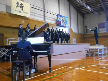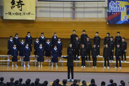 2組は、学級目標「僕らは銀河〜全宇宙が感動する歌〜」のもと、『COSMOS』を歌い上げました。序盤から終盤にかけて、体育館いっぱいに響き渡る美しい歌声で、宇宙の広がりを見事に表現する迫力のある合唱でした。