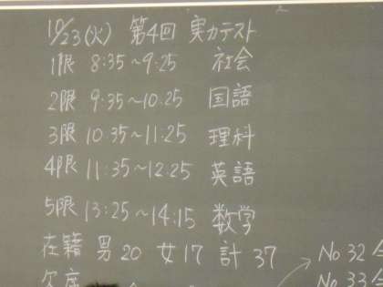 今日は一日実力テストに取り組んでいます。1,2年生の学習内容も含めた試験範囲となっているので、テスト利用して、少しずつ復習をしていきましょう。