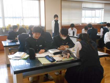 美術の授業では、ゴッホは北斎の作品のどんなところがよいと思ったのか、ゴッホになったつもりで考えてみました。