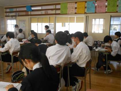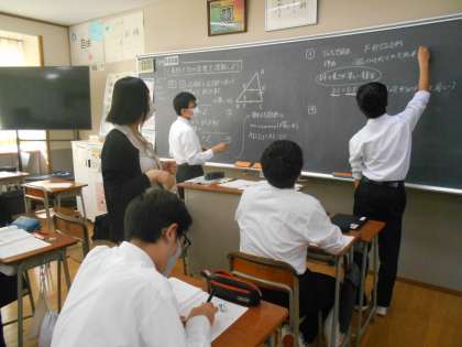 数学の授業では、三角形と比の定理について勉強しているクラスもあり、自分の考えを発表する場面もありました。