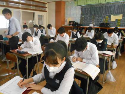 英語の授業では、新出単語の意味調べ等、ノート作りを進めました。一つ一つ覚えていきましょう。