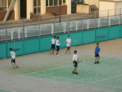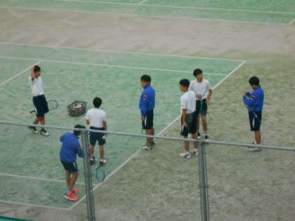 ソフトテニス部の様子です。日が暮れる時間が早くなりました。時間を有効に使い練習を進めていきます。