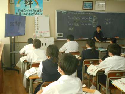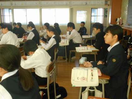 英語の授業では、単語練習をした後、日本に住む外国人芸術家について書かれた文章を読み取ることに取り組みました。