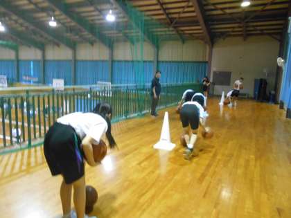 バスケットボール部は、シュート練習やドリブル練習を繰り返し行いました。何事も基礎が大切です。