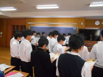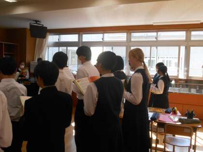 音楽の授業では、歌唱練習でした。合唱コンクールの練習が何だか懐かしく感じました。