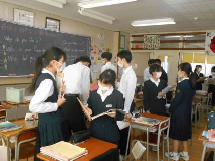 英語の授業では、好きなことや得意なこと、また、興味があること等をWhy,Who,Whereといった疑問詞を使って、掘り下げて聞くことにトライしました。