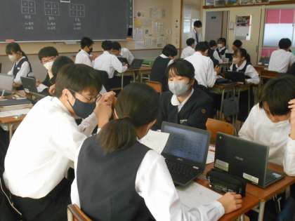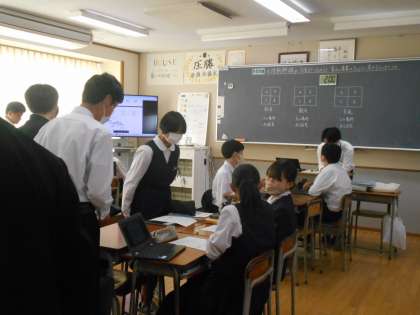 社会の授業では、北陸新幹線が大阪までつながると、富山の産業はどのように変化すると思うか、グループごとに意見交換をしました。