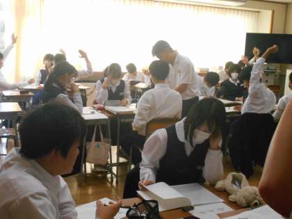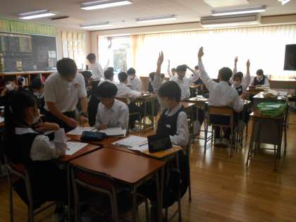 数学の授業では、課題に合格した人から、ミニティーチャーになって仲間の答合わせを手伝いました。