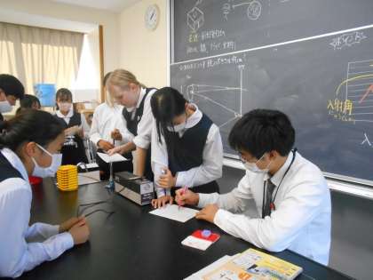 3年生は、物体を引き上げる方法を変えると仕事量は変わるのか実験を通して調べていました。1年生は、鏡に全身が映らないのはなぜか、作図をしながらその理由を考えたようです。手を動かしてやってみたり、書いてみたりすることは大切ですね。