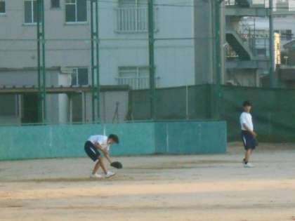 グラウンドの部活動の様子です。少ない人数でもできる練習を進めました。