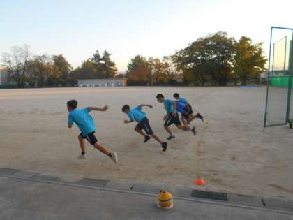 グラウンドの部活動の様子です。少ない人数でもできる練習を自主的に進めました。
