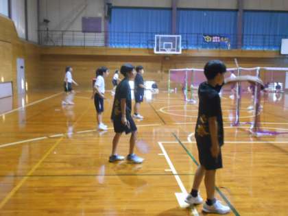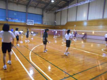 体育館での活動の様子です。人数が多く、いつもはコートで十分練習できない1年生も、思いっきりできたようです。