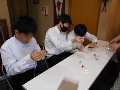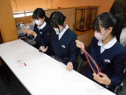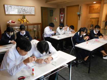 津田水引折型で水引のチャーム作りを体験しています。