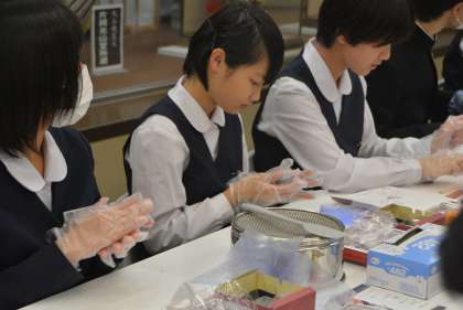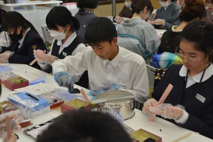 石川県観光物産館にて、和菓子作り体験をしています。