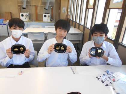 石川県観光物産館にて、金箔貼りの体験をしました。