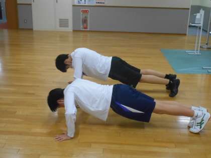雨が降っていたため、校舎内で活動しました。中には、委員会活動を終え、トレーニングを自主的に行っている人もいました。すばらしいです。