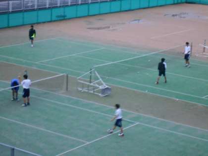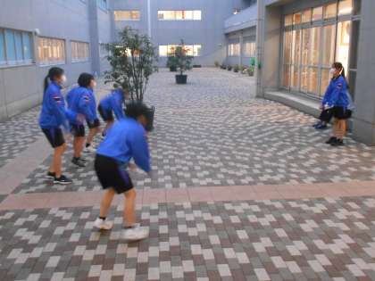 ソフトテニス部は、晴れ間を見てコートで練習をしたり、中庭でトレーニングをしたりしました。みんな元気に活動しました。