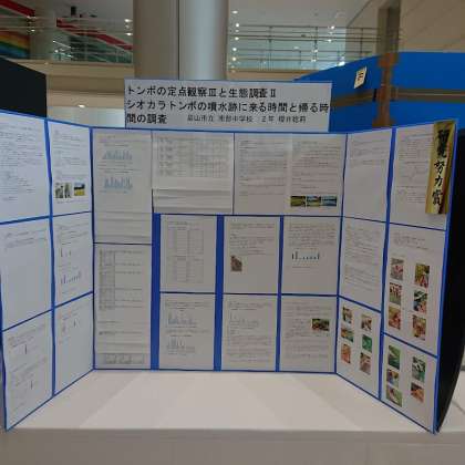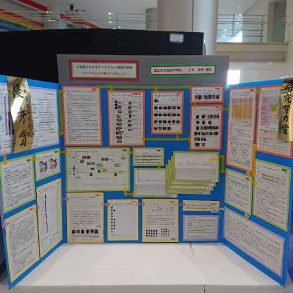 富山市科学展覧会優秀作品部門には、3年生の9年間継続的にテントウムシを観察した研究と2年生のトンボを定点観察をした研究が展示されました。どちらも膨大な観察データを基にした研究で、その課題を追及する姿勢に圧倒されました。たくさんの方に素晴らしい研究を披露することができました。