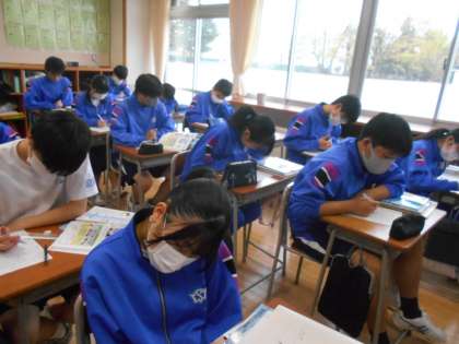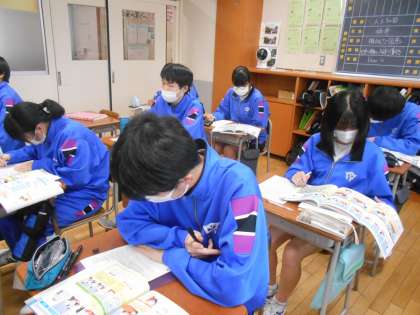 保健体育の授業では、緊急時の救命救急の方法について教科書を見ながら復習をしました。