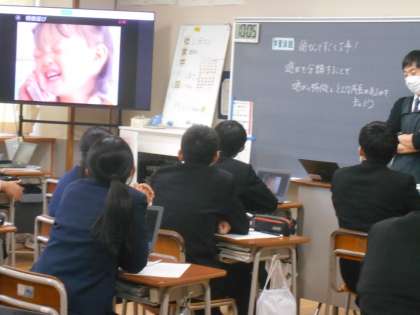 家庭科の授業では、遊びを分析することで、遊びの特徴と成長の関わりについて考えました。