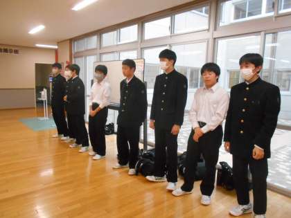 今日から、参加を申し込んだグループが、日替わりであいさつ運動を展開します。今日のグループは「2年1組オールスター」でした。元気なあいさつが生徒玄関に響きました。