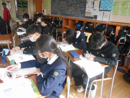数学の授業では、図形の移動について考えており、先生の質問に積極的に答える様子が見られました。