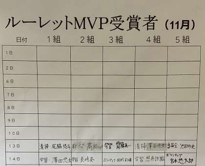 日直が級友のよさを紹介する「MVPルーレット」が今月から行われています。学習、清掃、係活動、ボランティアの項目をルーレットで決めて、その項目のMVPを終学活で紹介することでクラスに温かい雰囲気が流れています。