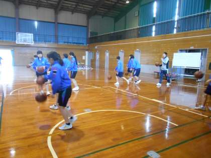 保健体育の授業では、バスケットボールに取り組み、今日はドリブルの練習をしました。