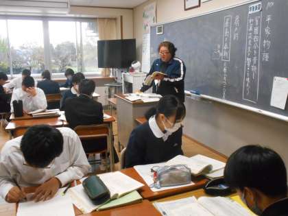 国語の授業では、「平家物語」の冒頭の部分を音読練習し、和漢混交文の響きを味わいました。どんなふうに感じたのでしょうか。