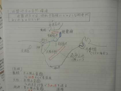 社会の授業では、近畿地方では、環境保全のためにどのような取組が行われているのか考えました。