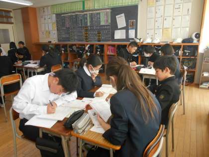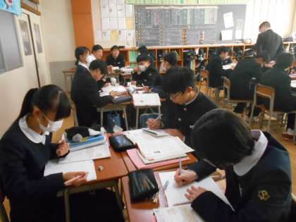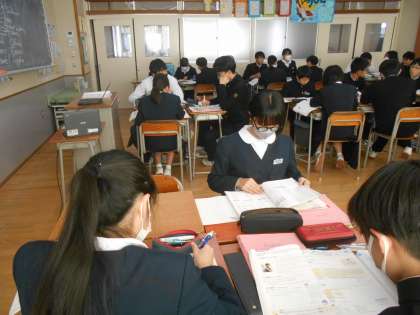 英語の授業では、感謝の気持ちを込めて手紙を書くにはどのような表現を使ったらよいのか、グループで助け合いながら、各自の手紙を完成させました。